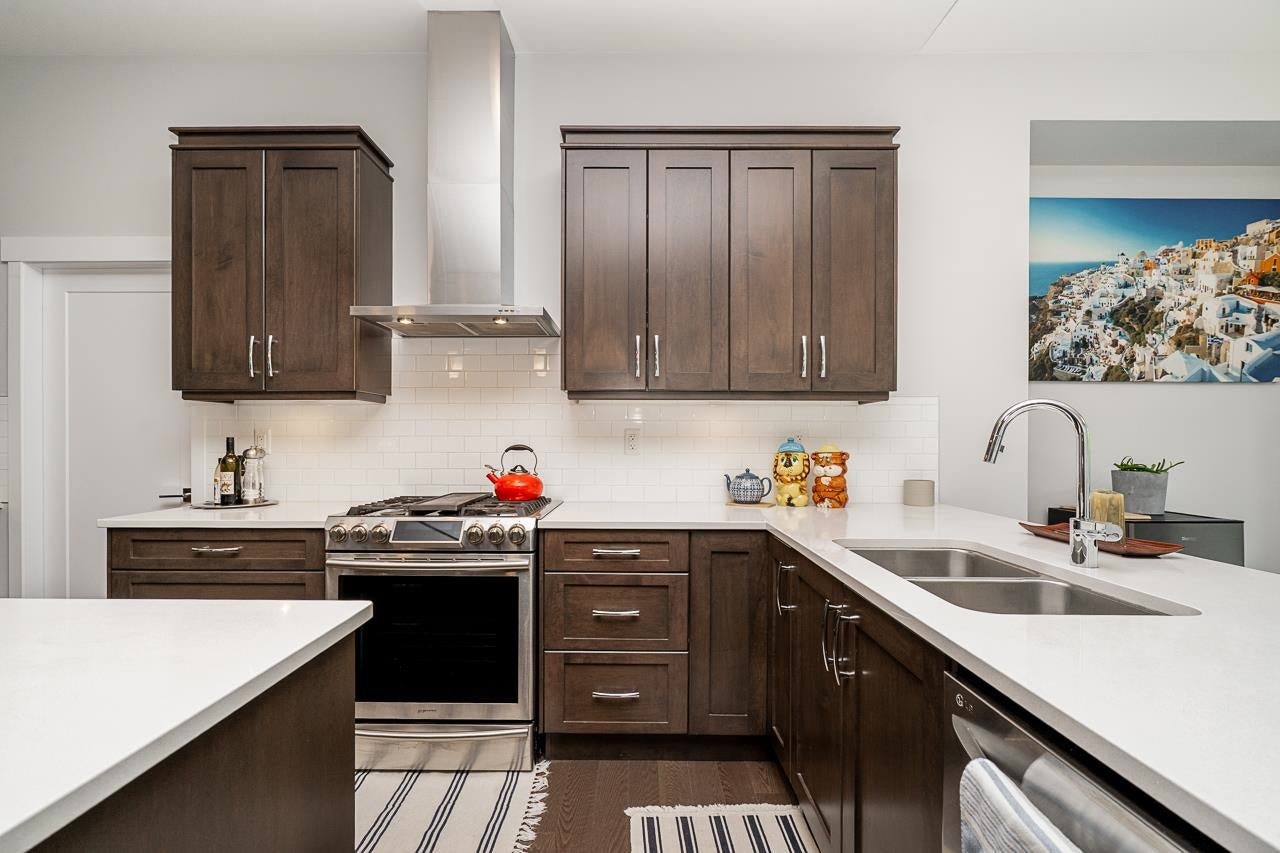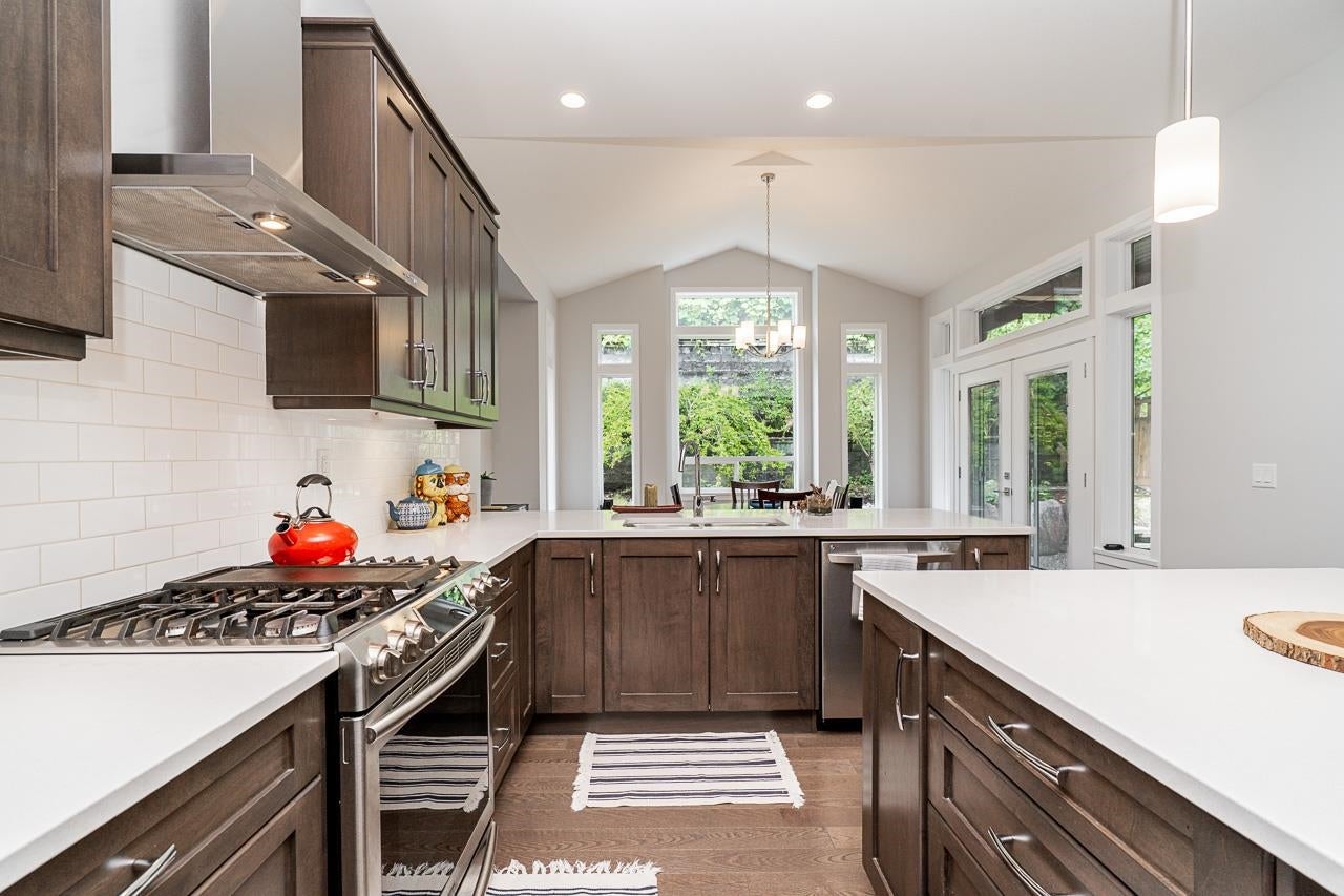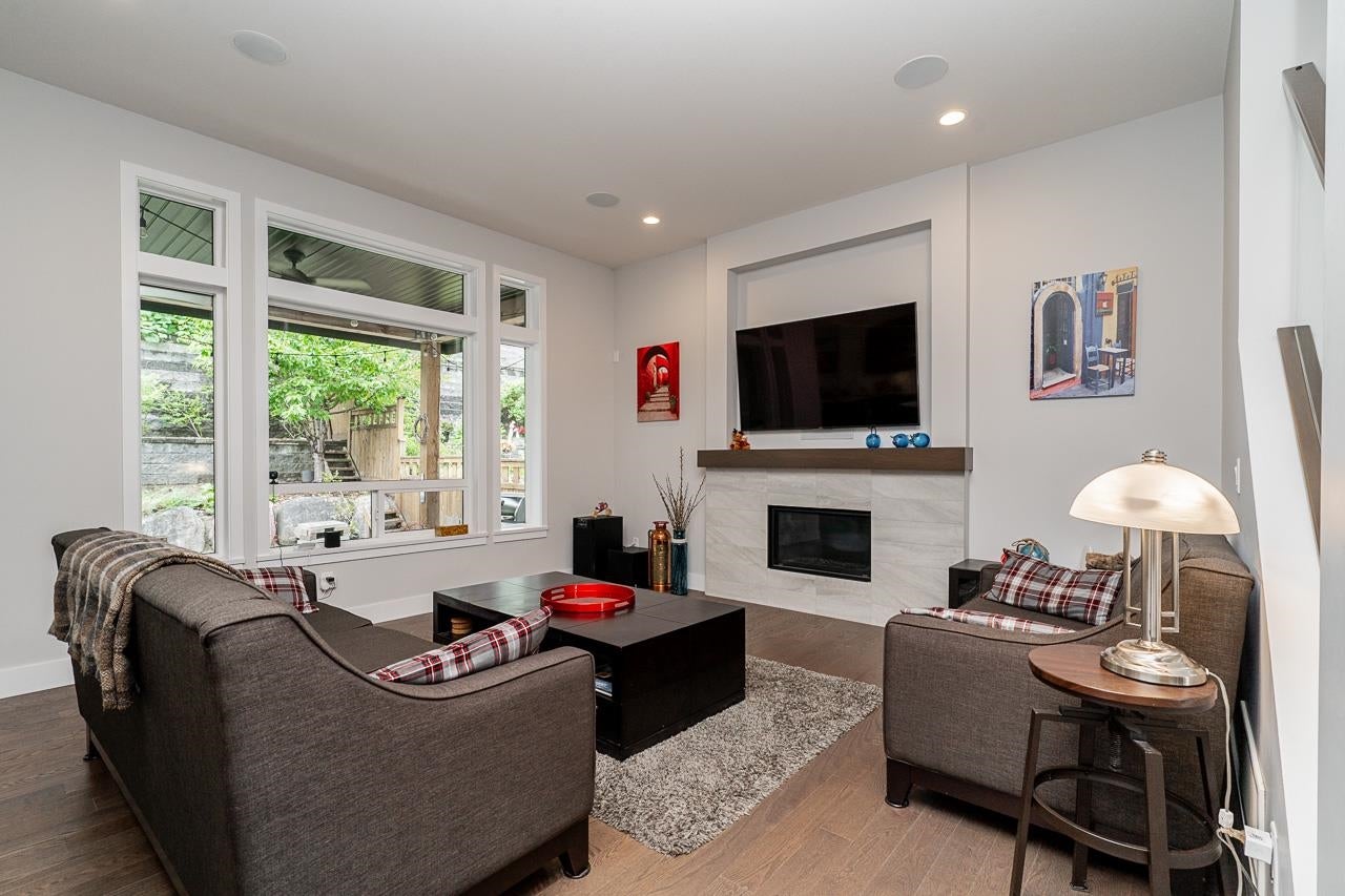 Spacious, chef-inspired kitchen with quartz counters, gas stove, walk-in pantry & large wired island—perfect for cooking & entertaining. High ceilings, vaulted dining area & under-cabinet lighting add style & function. Cozy living room with gas fireplace & built-in ceiling speakers. Private main floor den with etched glass, plus a convenient 2-pc bath. Upstairs: 4 bedrooms, includes huge primary with stunning river/valley views, 2 walk-in closets, and a spa-like ensuite with soaker tub, double sinks & separate shower. One upper bedroom features its own deck. Private backyard with fruit trees, front & back decks. Basement includes a bedroom, full bath, large rec room with suite rough-in, separate heat, & lots of space for extended family or guests. Glass railing built-in vac, and more...